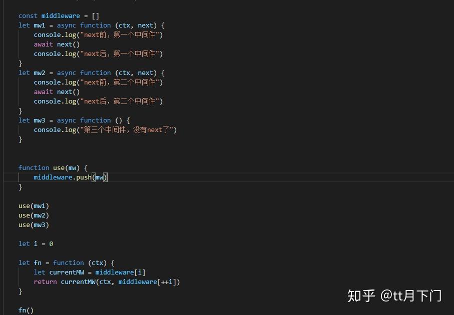 - 要把上下文ctx对象和下一个中间件next传给当前的中间件