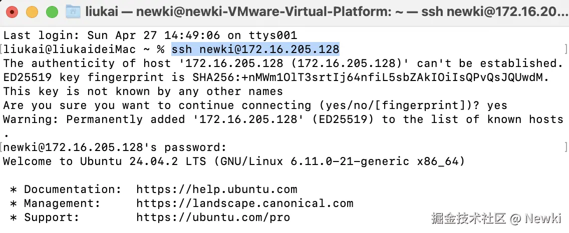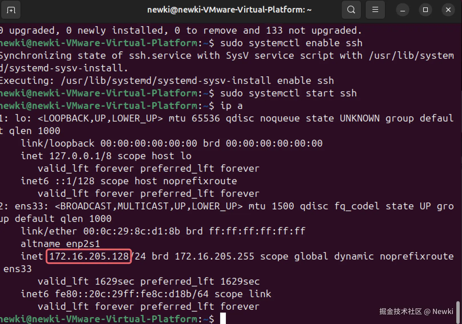 ssh newki@172.16.205.128