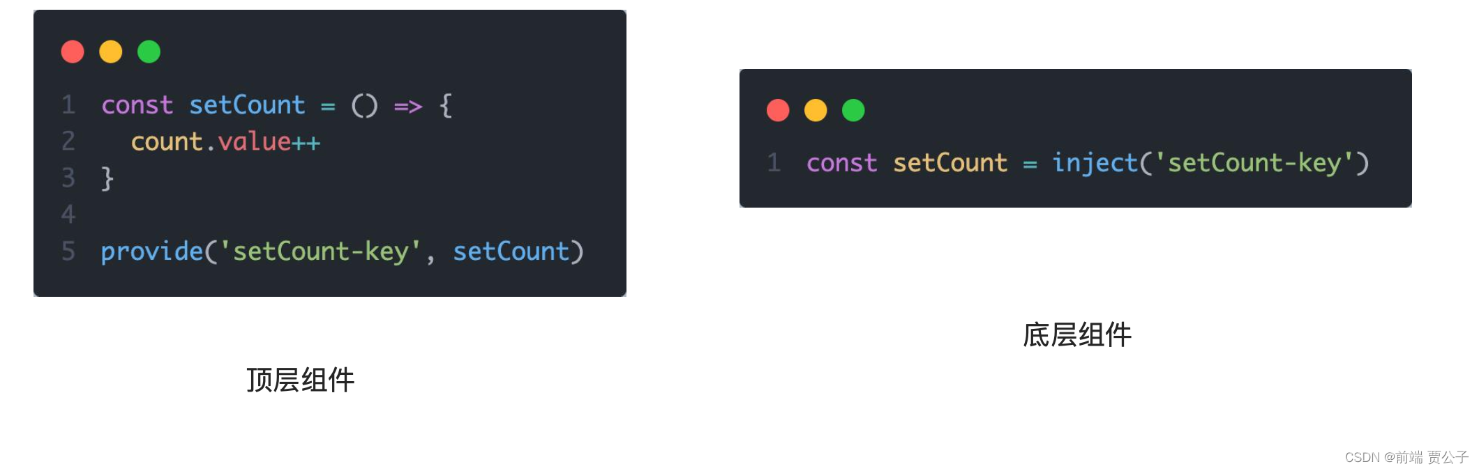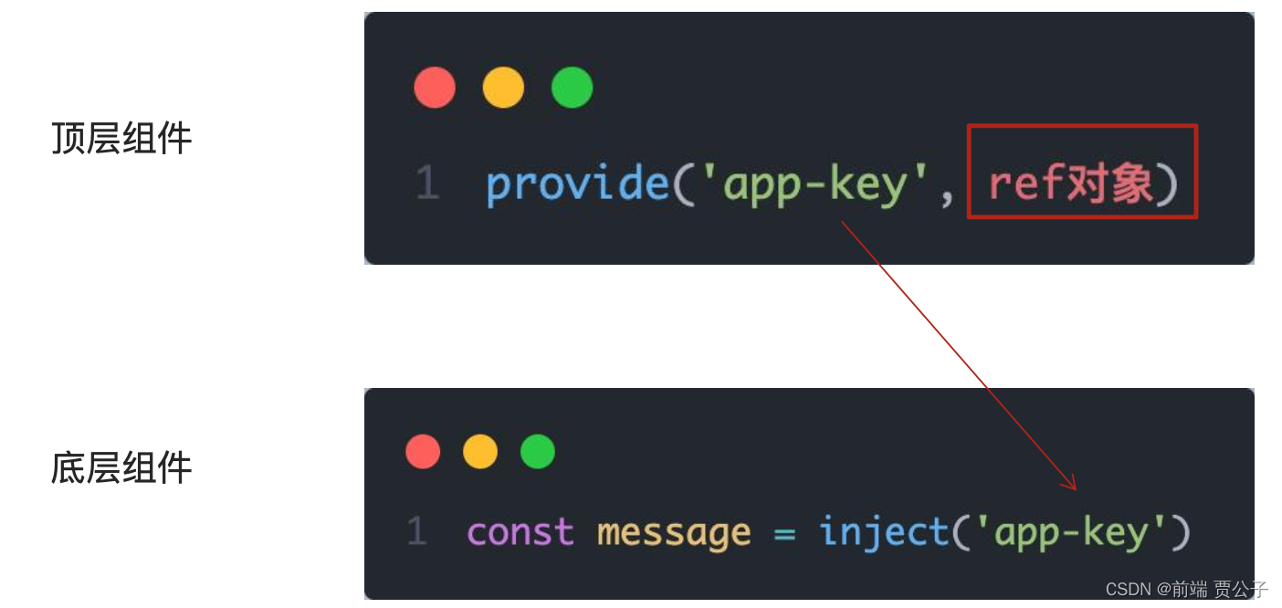 顶层组件向任意的底层组件传递数据和方法,实现跨层组件通信