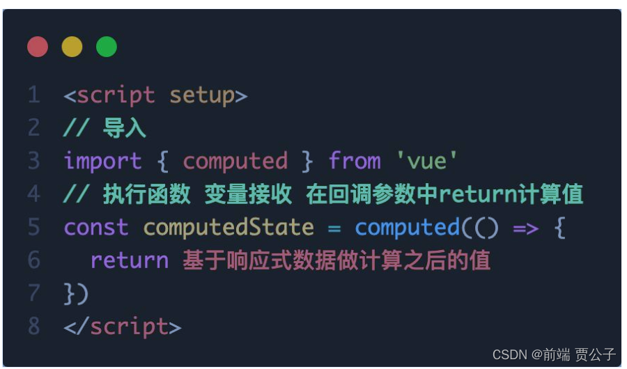 计算属性基本思想和Vue2的完全一致,组合式API下的计算属性只是修改了写法