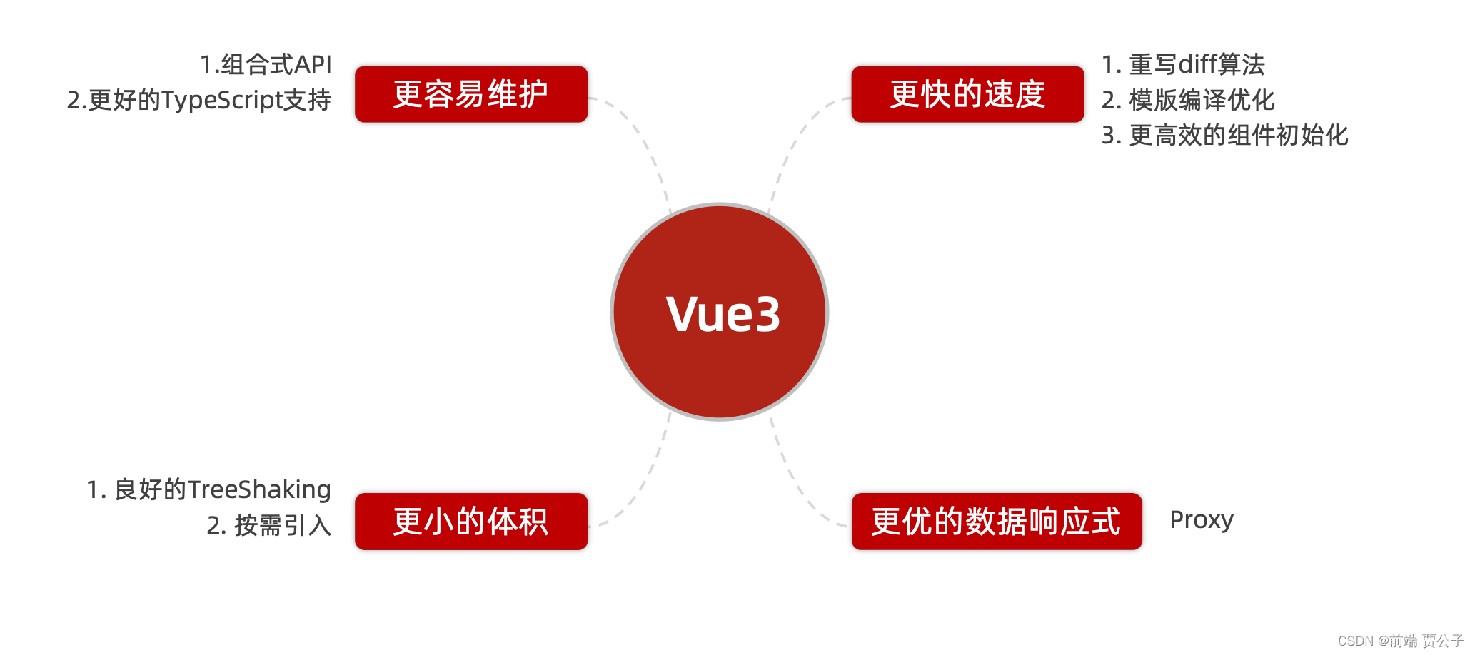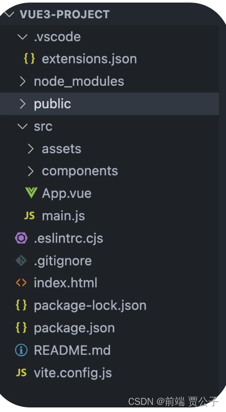- package.json - 项目包文件 核心依赖项变成了 Vue3.x 和 vite 3. main.js - 入口文件 createApp函数创建应用实例