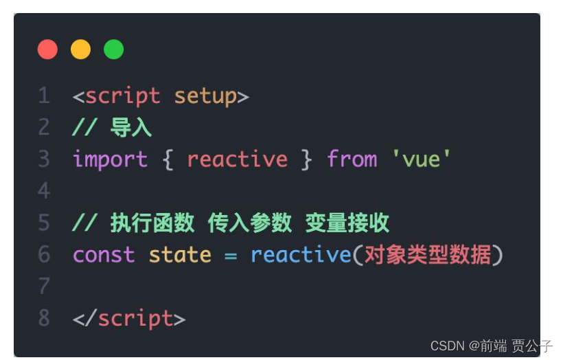 作用:接收简单类型或者对象类型的数据传入并返回一个响应式的对象