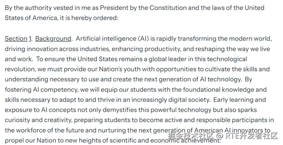特朗普要求全美国的 K12(从幼儿园到高中)学校的老师、学生深度学习、使用 AI,为下一世代的工作方式、创造力培养人才奠定竞争基础。