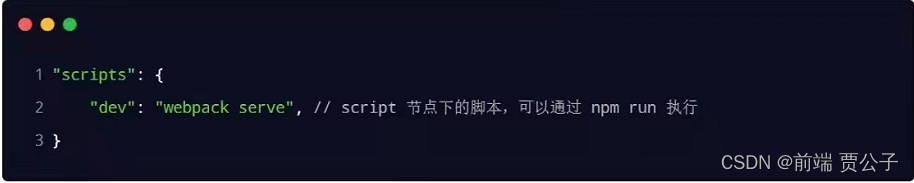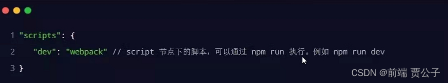 在package.json 的 scripts 节点下 新增dev脚本如下