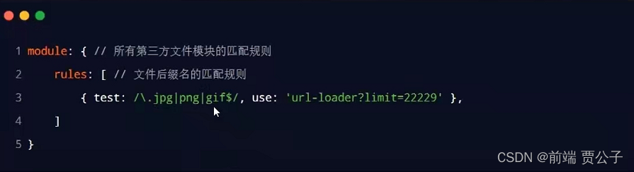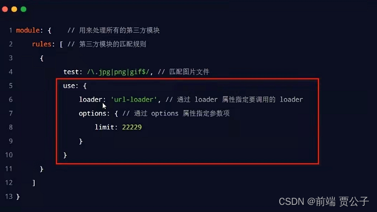 其中 test表示匹配的文件类型,use表示要调用的loader