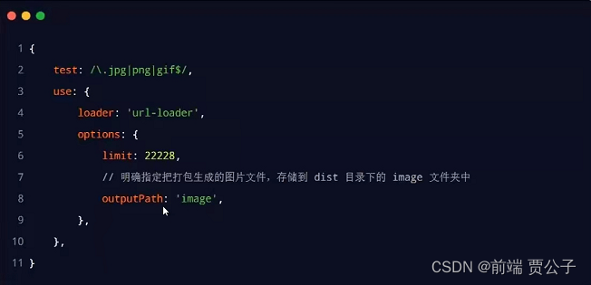 修改 webpack.config.js中的url-loader配置项 新增outputPath选项即可指定图片文件的输出路径