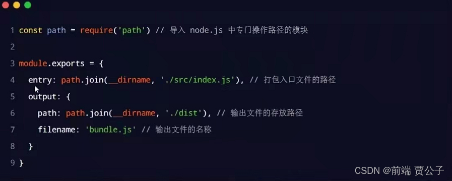 注意;由于webpack是基于node.js开发出来的打包工具,因此在配置文件中,支持使用node.js相关的语法和模块进行webpack的个性化配置