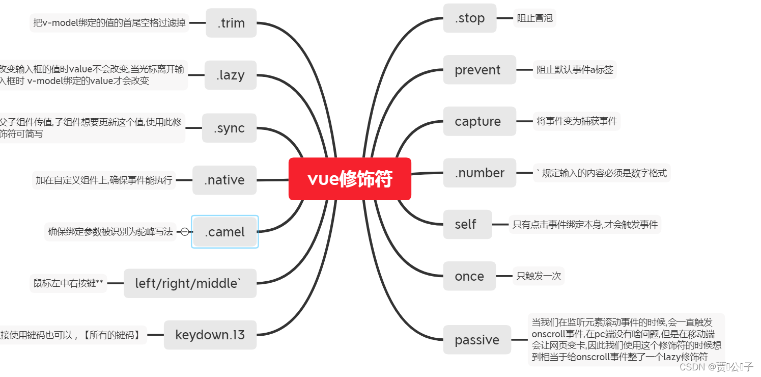 能够用v-model的修饰符的标签类型有 :input/textarea、select(option)、input[type='radio']、input[type='checkbox']