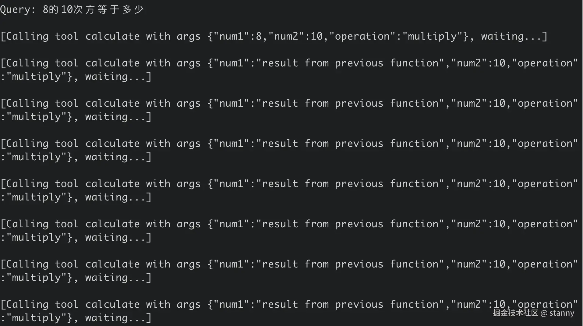 当然也有一些不太对的地方,比如这里提问 8 的 10次方,ai 回复的工具调用信息不太对,num2 应该也是 8 而非10.