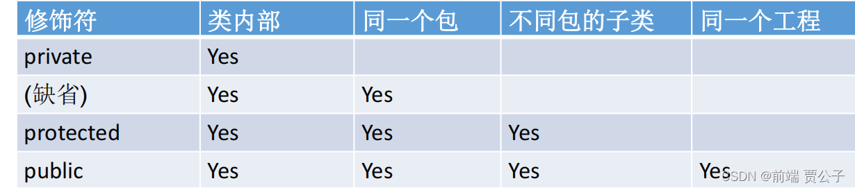 Java权限修饰符public、protected、(缺省)、private置于 类的成员 定义前, 用来限定对象对该类成员的访问权限