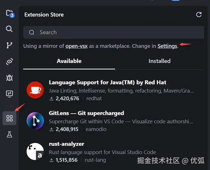 - 点击Settings,定位到插件市场源的设置页面
