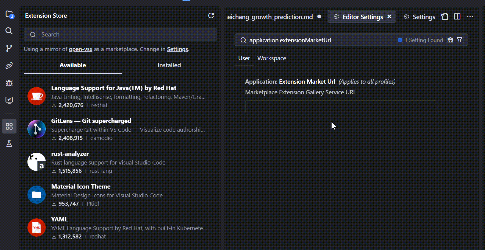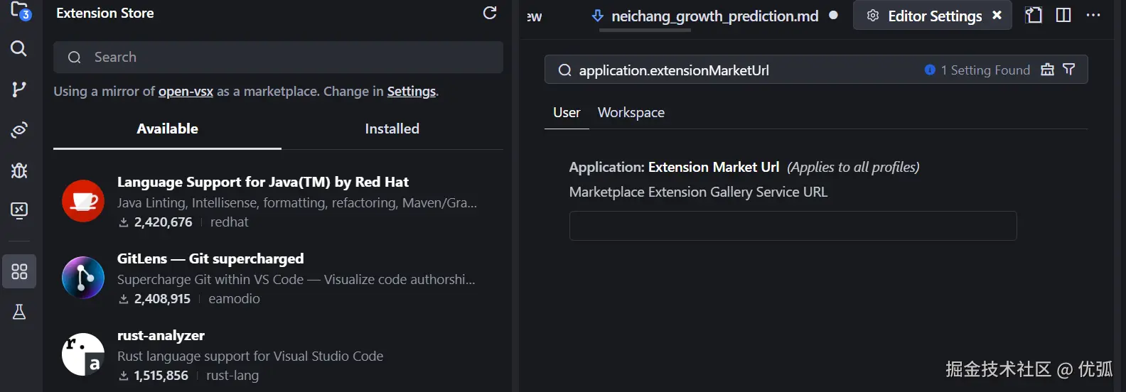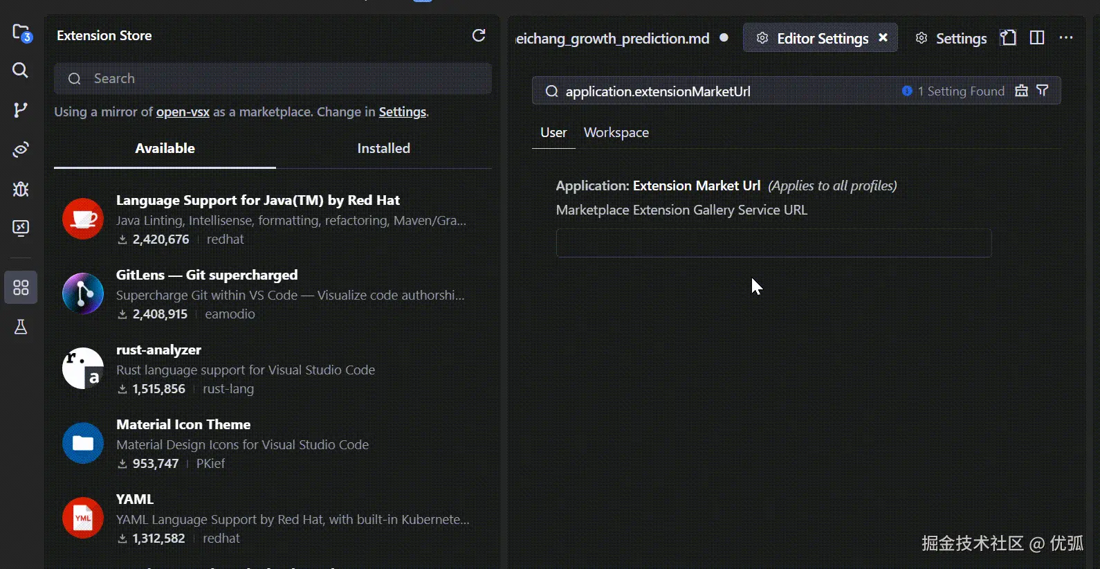 - 这里你只要有marketplace.visualstudio.com的域名即可,如果你的url填错了,依然可以正确切换。