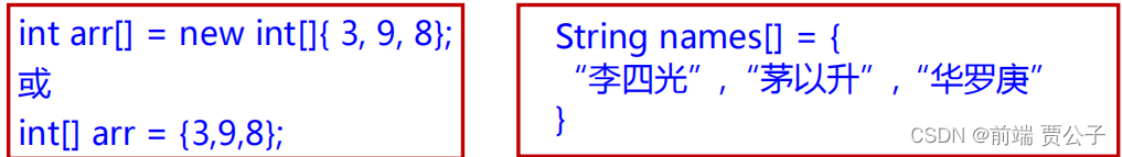 静态初始化: 在定义数组的同时就为数组元素分配空间并赋值