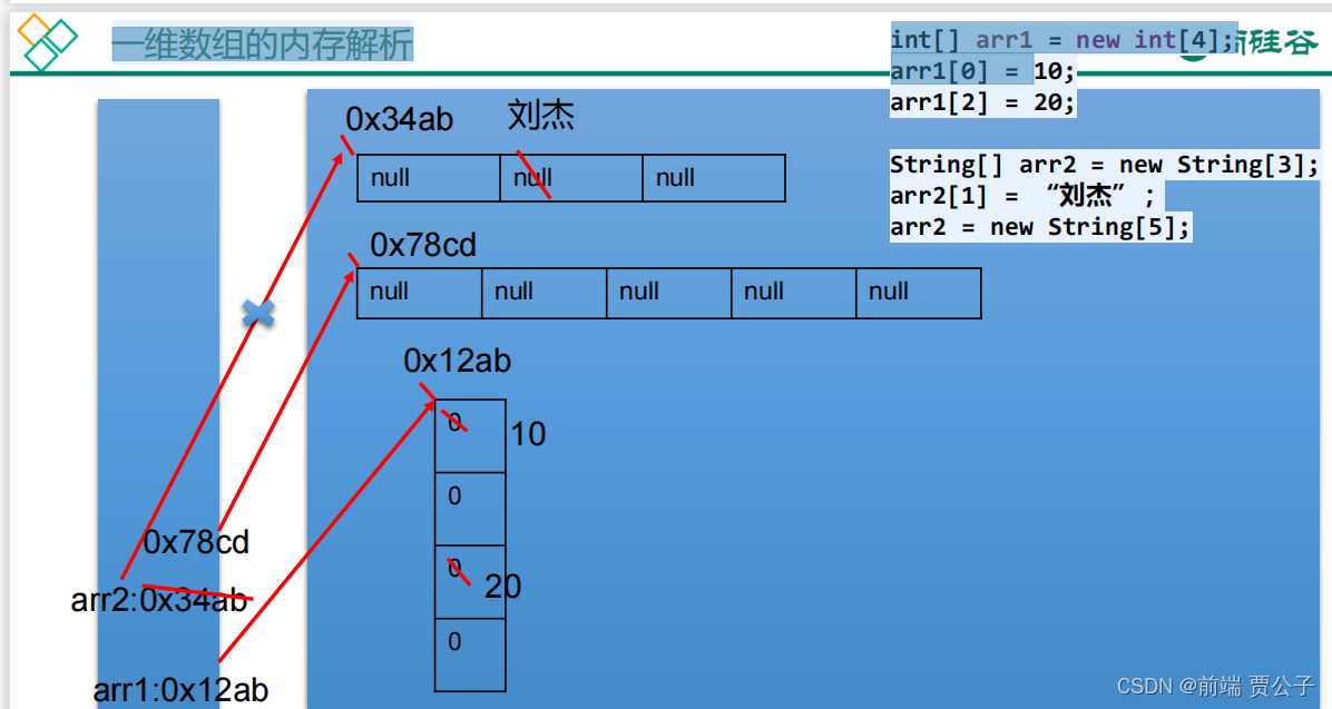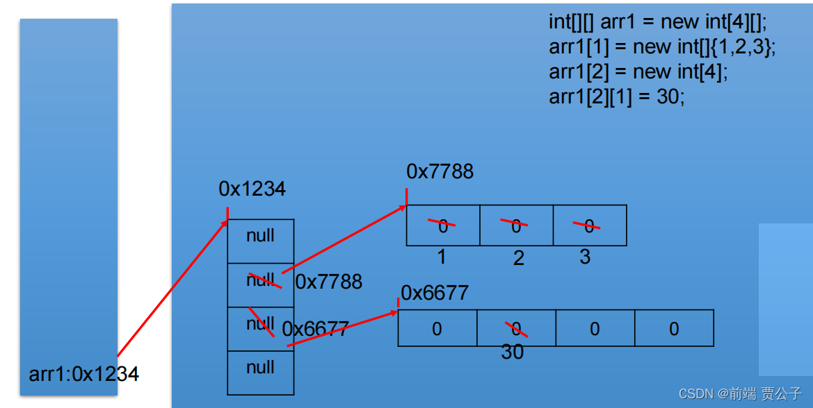 *针对初始化值2 String[][] arr2=new String[3][];