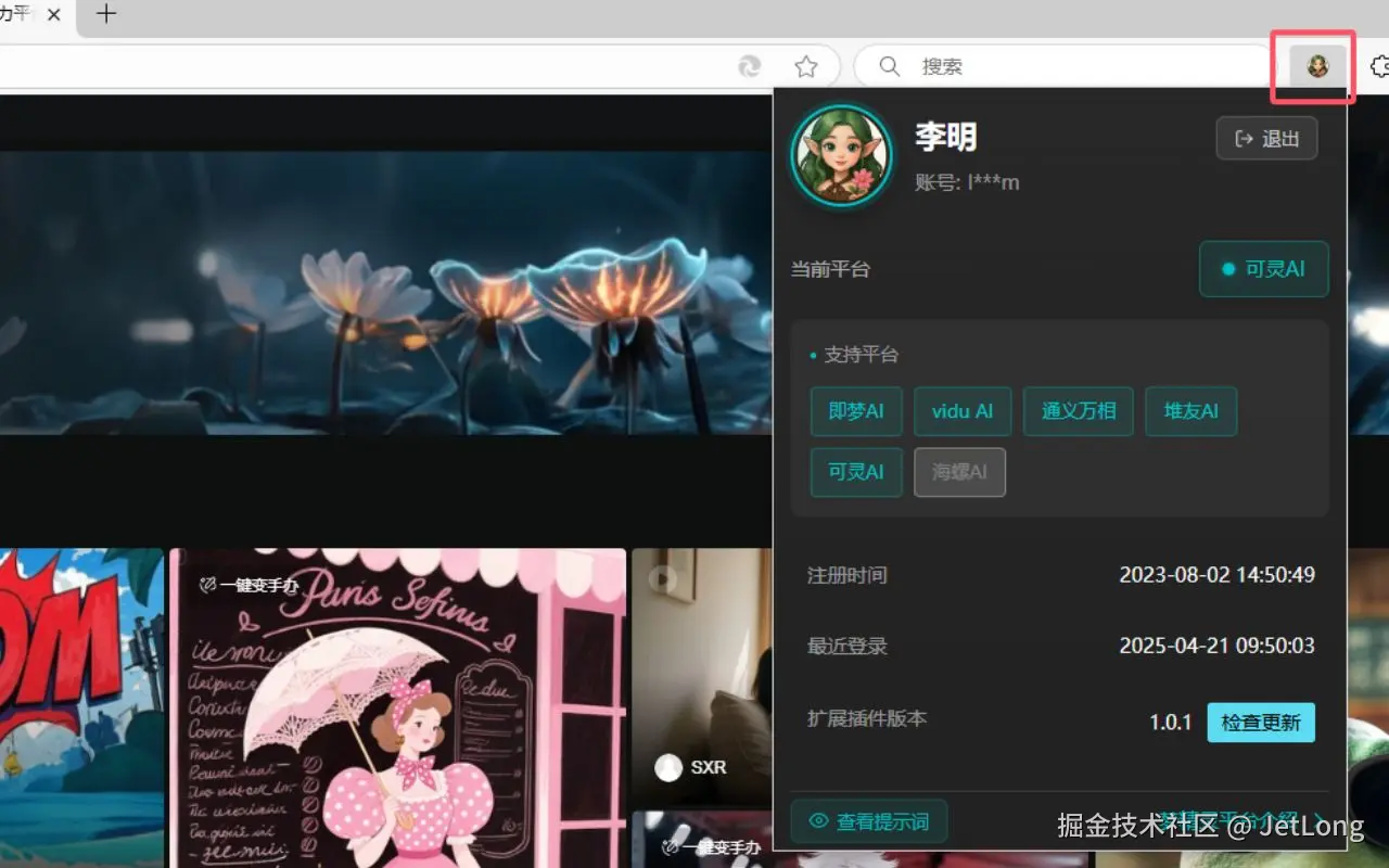 在跨平台管理方面,梦精灵更是一把好手。支持市面上主流的即梦、vidu、可灵、堆友等多个 AI 绘画平台,还可以在 DeepSeek、豆包等任何网页平台选中文本直接收藏提示词,无需在不同平台间反复切换,就能直接进行提示词的管理。打开梦精灵界面,所有平台的提示词一目了然,想调用、修改、整理都能一键操作,效率直接拉满。