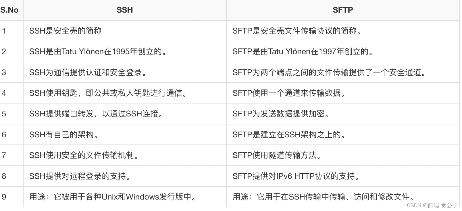 虽然SSH和SFTP都是用于安全通信和文件传输,但它们有很大的区别。SSH主要用于对系统的远程命令行访问,而SFTP则专门用于文件传输。SSH使用公钥加密技术进行认证,而SFTP使用用户名和密码。SSH使用端口22进行通信,而SFTP可以使用端口22或115。最后,SSH是一个命令行界面,而SFTP通常使用一个图形用户界面。在选择SSH和SFTP时,重要的是考虑具体的使用情况,并选择最适合要求的协议。