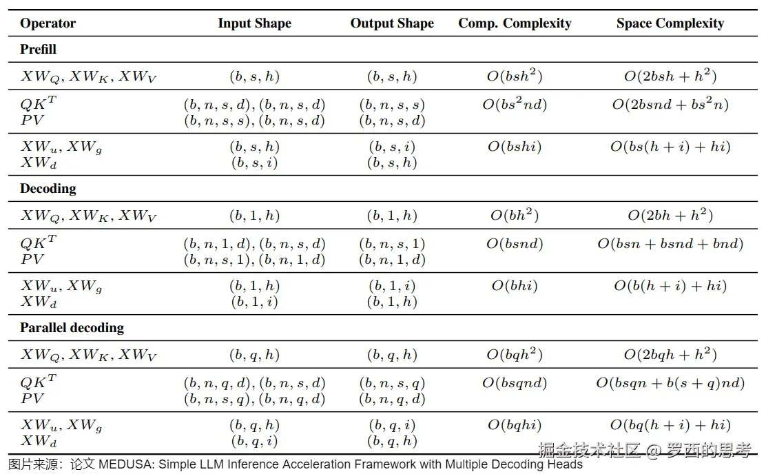 下图给出了prefill,decoding、MEDUSA decoding阶段的计算和空间复杂度。