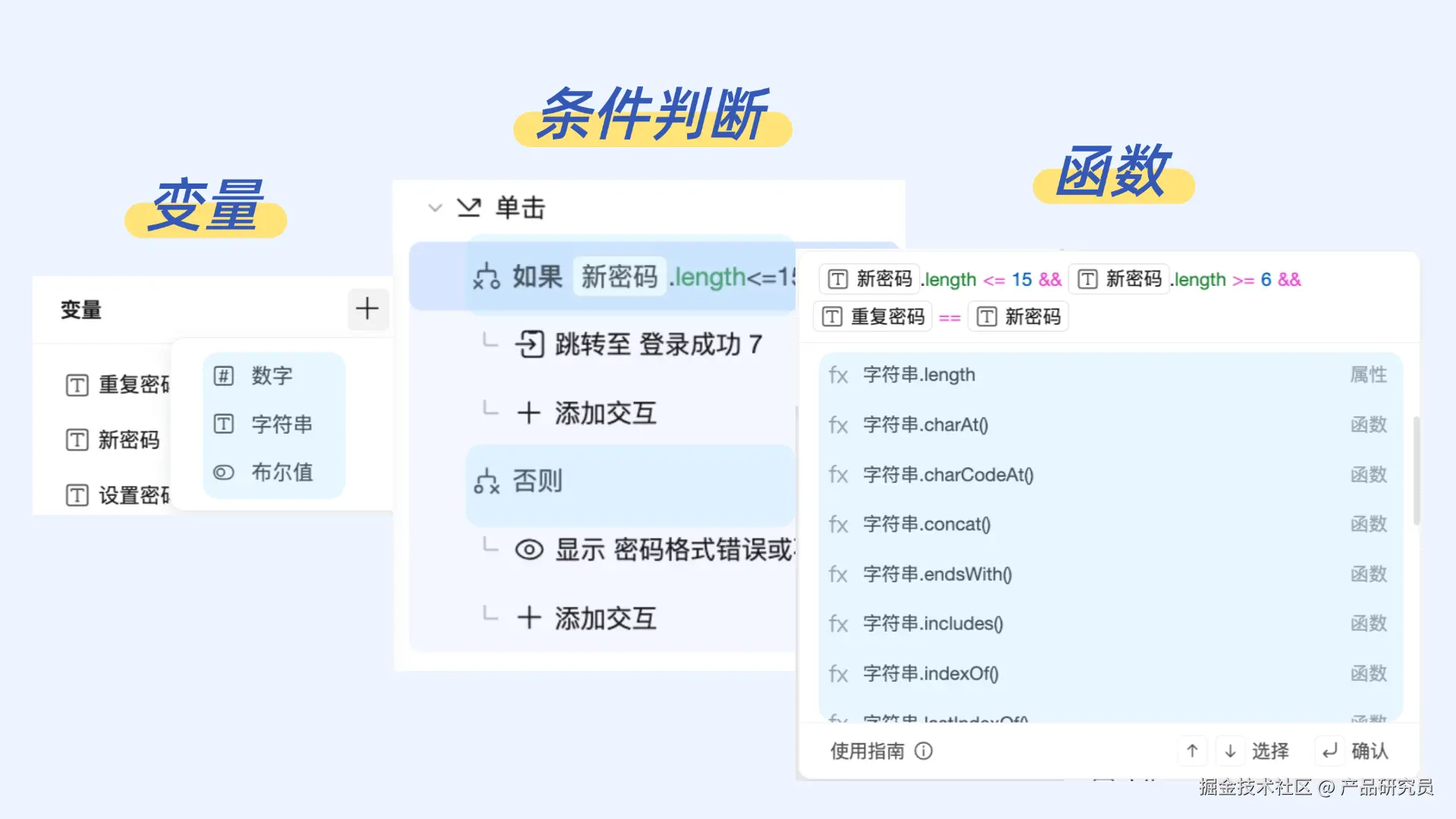 在传统原型设计中,产品经理仅依赖页面跳转、显示隐藏、打开浮层等基础交互功能,对高级交互功能还停留在复杂的印象或者不了解的状态,接下俩为你介绍几个高级交互功能“变量、条件判断与函数”。