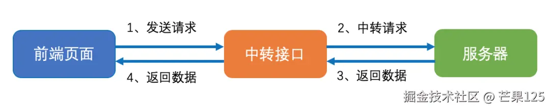 服务器代理,顾名思义即在发送跨域请求时,后端进行代理中转请求至服务器端,然后将获取的数据返回给前端。一般适用于以下场景: