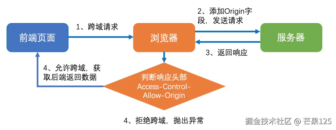 CORS简单请求跨域实现流程:
