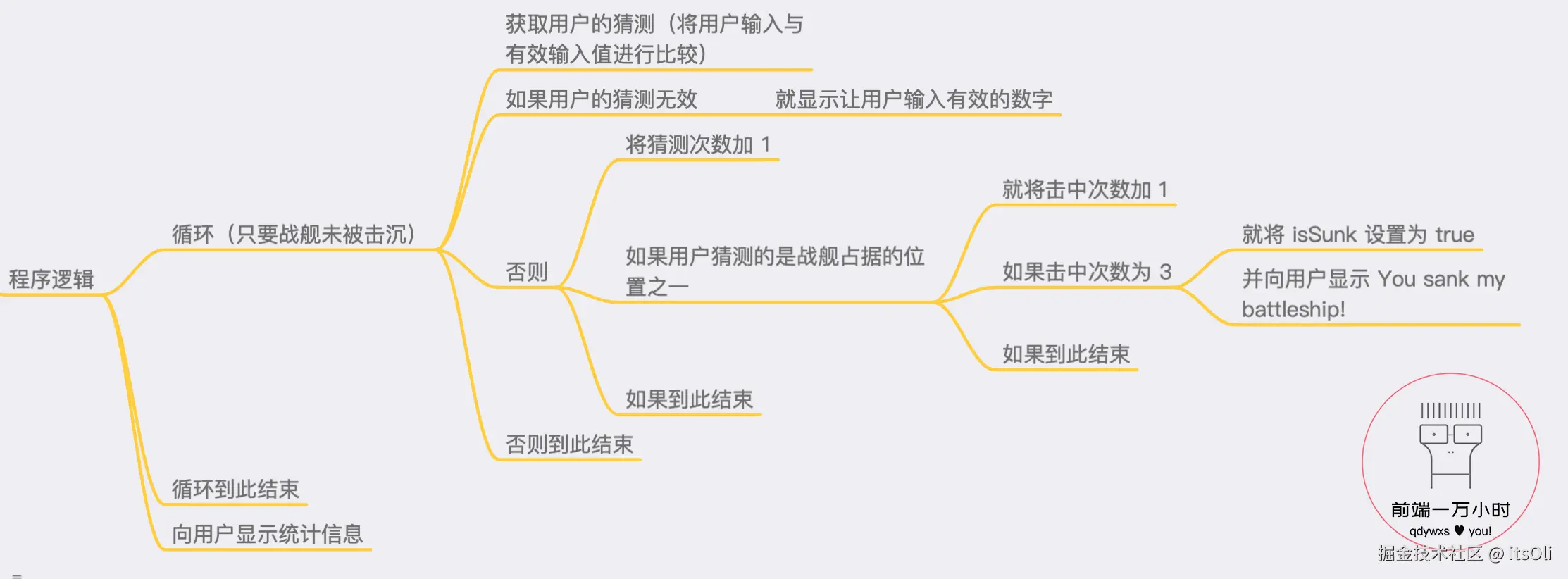 alert("MISS"); // 如果一个位置都没击中,则提示用户“MISS”。