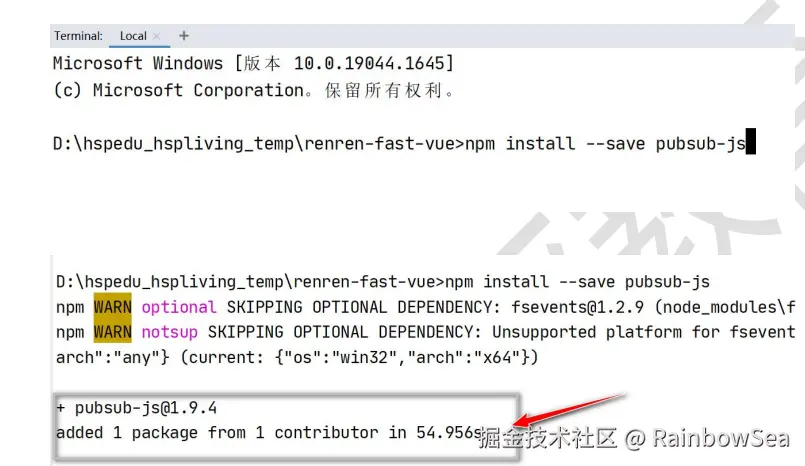 E:\Java\project\RainbowSealiving\renren-fast-vue>npm install --save pubsub-js