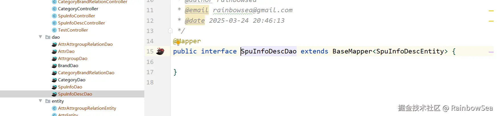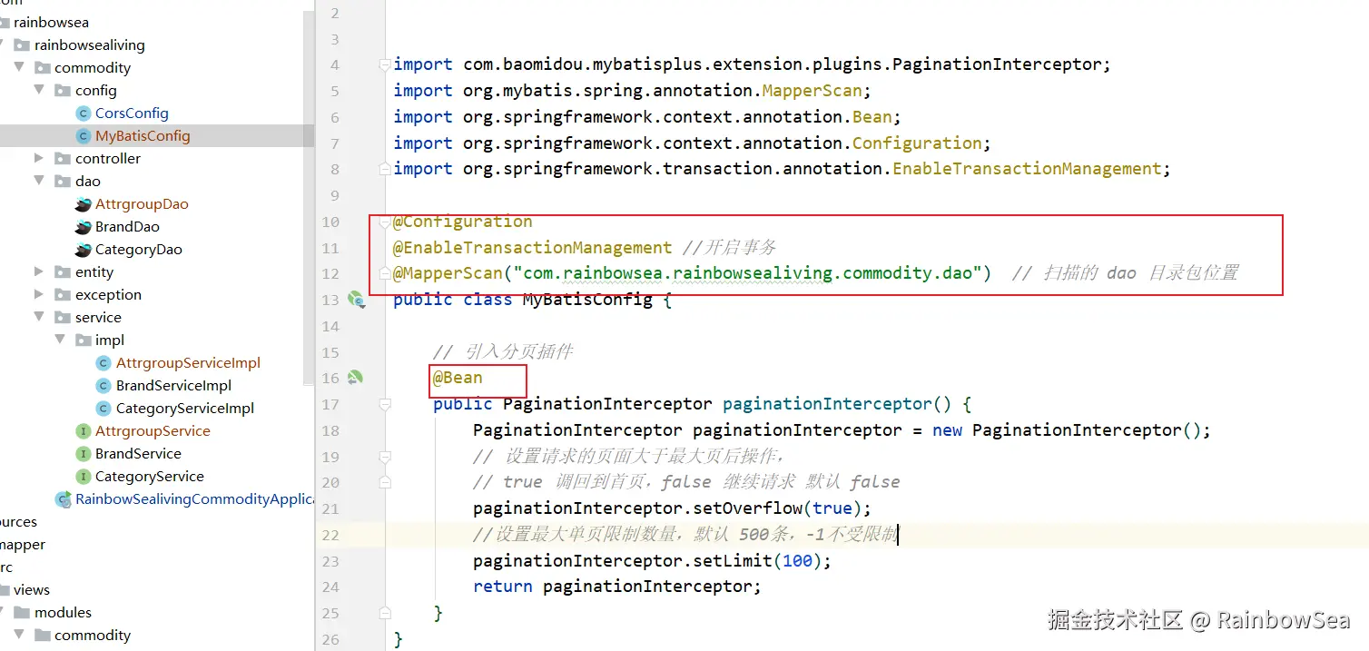@MapperScan("com.rainbowsea.rainbowsealiving.commodity.dao") // 扫描的 dao 目录包位置