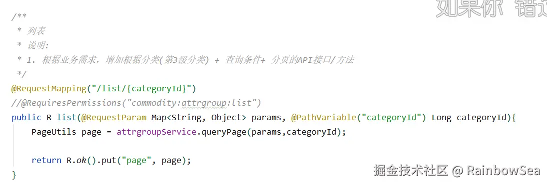 public R list(@RequestParam Map<String, Object> params, @PathVariable("categoryId") Long categoryId){