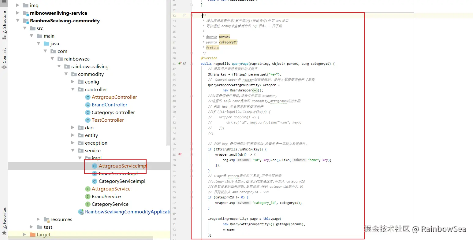 PageUtils page = attrgroupService.queryPage(params,categoryId);