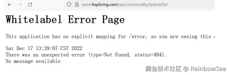 正确的是,我们访问的结果应该是如下的,RainbowSealiving-commodity 模块项目是无法访问到我们配置到 Nginx 当中的静态文件资源的,因为我们并没有在 Nginx 当中配置该 static 静态文件的路由路径,所以项目是无法找到该 Nginx 当中的 /mydata/nginx/html/static 路径的静态资源的。