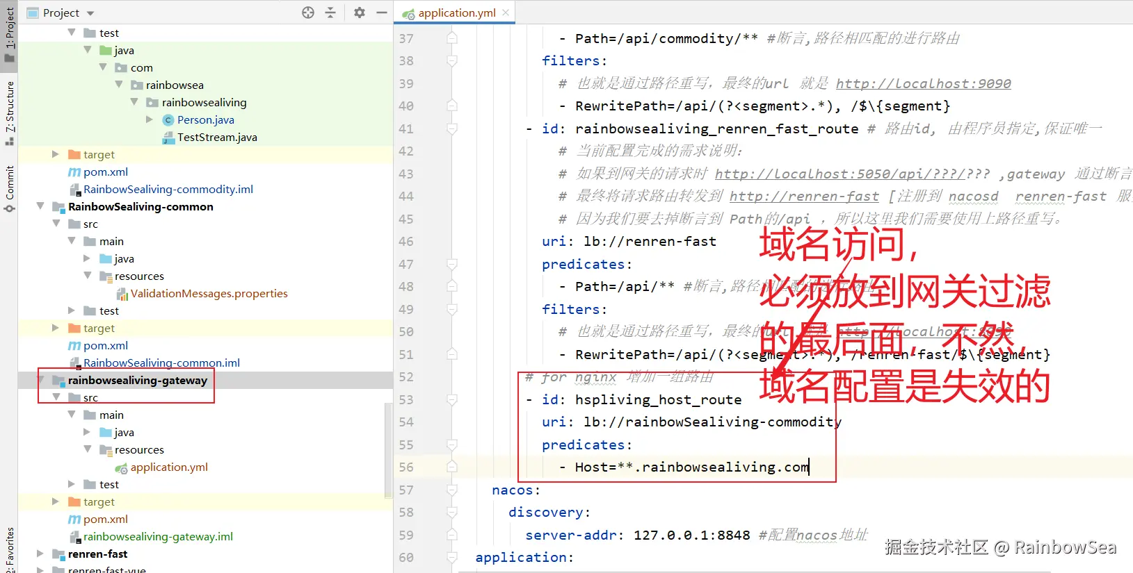# 最终将请求路由转发到 http://rainbowSealiving-commodity [注册到 nacosd renren-fast 服务ip+端口]/????? = >url=uri+path