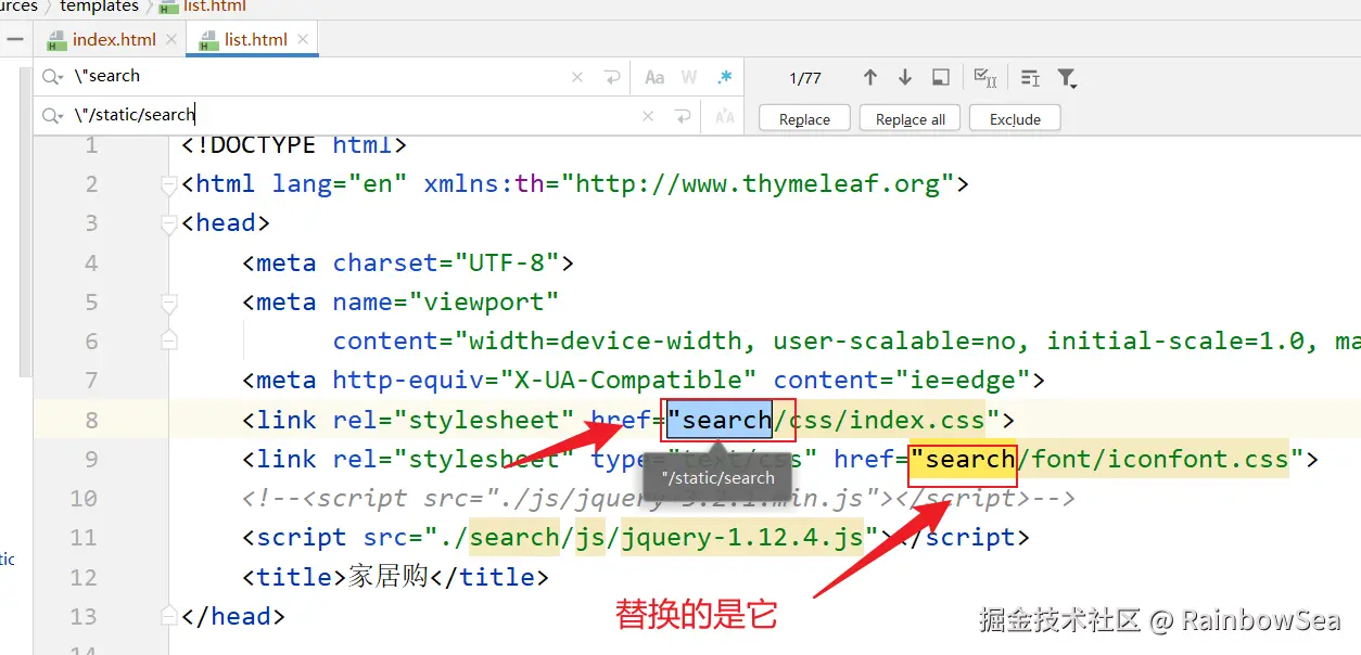 - 对 index.html 和 list.html 模板文件访问静态资源路径进行替换修改