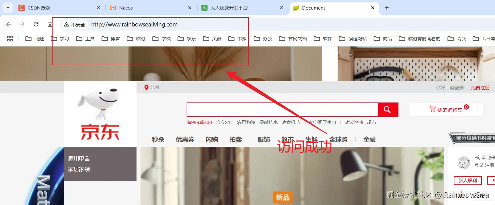 - 重启 RainbowSealiving-commodity 服务, 这时访问 页面, 就正常了, 也实现了动静分离