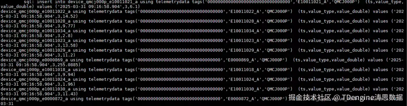 当前生产系统已支撑智能制造车间超 1 万台设备、超过 100 万个采集点的数据写入与存储。我们采用 C# 语言开发程序,执行 insert 语句,将物联网基础平台采集到的数据高效写入 TDengine 数据库中。