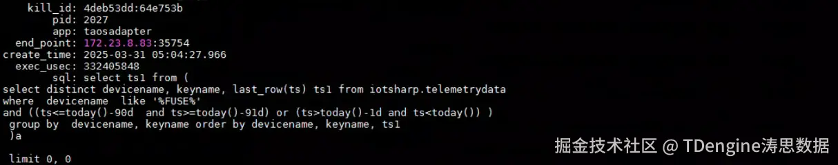 目前,项目的生产系统集群运行的是 TDengine 3.3.2.12 版本,采用 3 节点部署,每台服务器配置为 96 核 CPU(s)、192GB 内存及 2 块 7.6TB SSD,主要用于数据的高并发写入与实时查询。