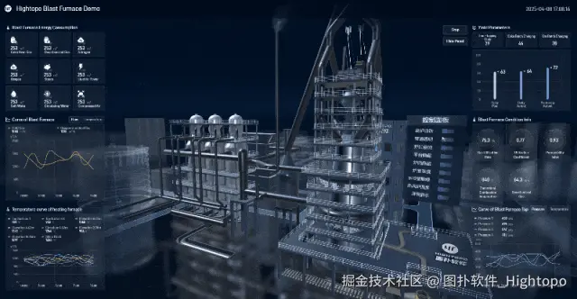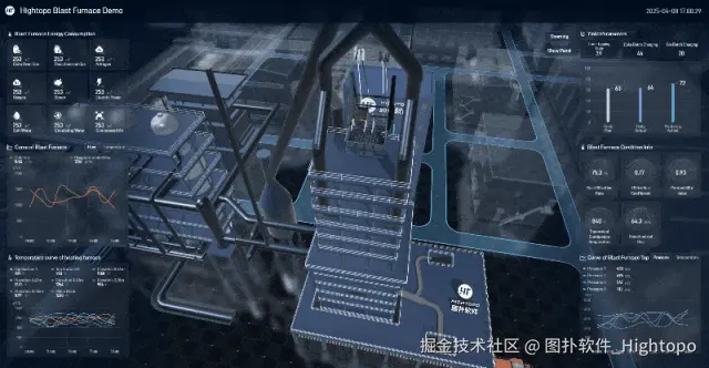 图扑软件具备超强的实时数据处理能力,能够迅速采集、高效传输并精准解析来自高炉各传感器的海量数据,确保监控界面信息实时更新、准确无误。