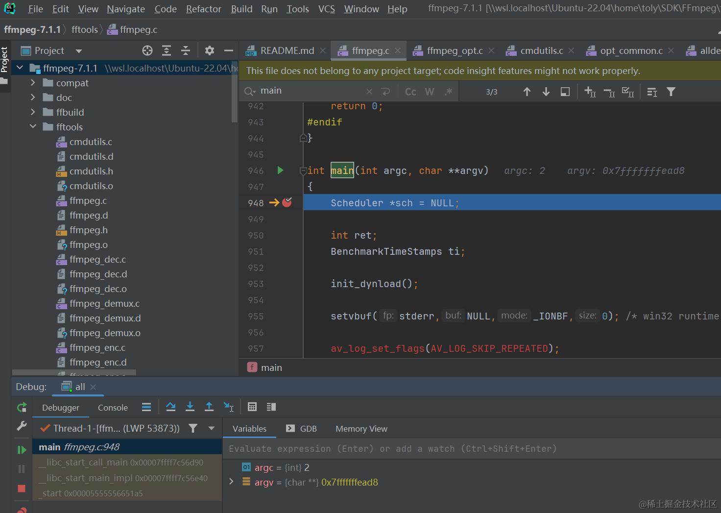 1. 调试 ffmpeg.c 有什么意义
