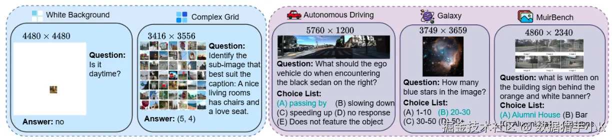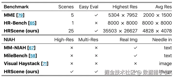 1、缺乏统一基准:现有的 VLMs 评估基准大多集中在低分辨率图像上,平均分辨率通常低于 1k,无法满足高分辨率图像理解的需求。
