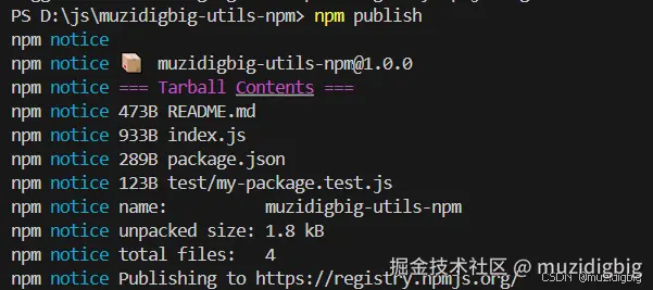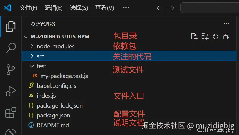 package.json:在package.json文件中,你可以添加更详细的描述、关键字、作者信息等。{ "name": "muzidigbig-utils-npm", "version": "1.0.0", "description": "A simple npm package example.", "main": "index.js", "scripts": { "test": "echo "Error: no test specified" && exit 1" }, "keywords": ["muzidigbig", "utils", "npm"], "author": "muzidigbig", "license": "ISC" }