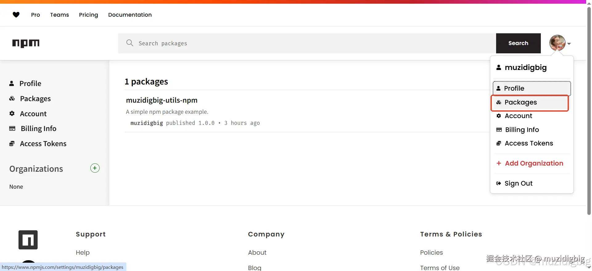 验证发布:登录到npm网站,查看你的包是否已经发布。