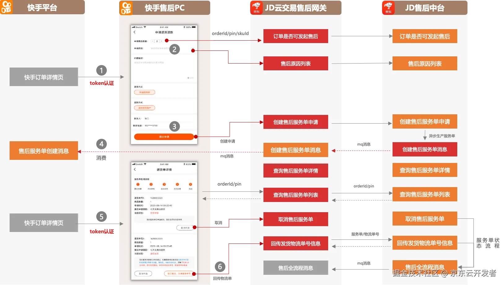 1.以快手直连对接云交易的售后为案例,详细流程如下图所示: