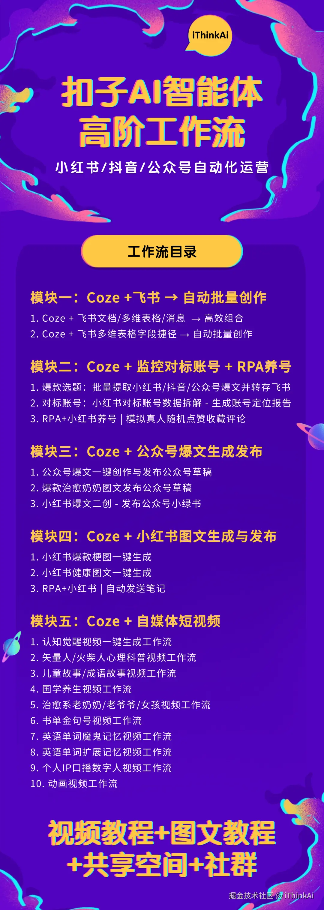 需要复制工作流的,可以文末加入iThinkAi扣子空间解锁,超多工作流等你解锁