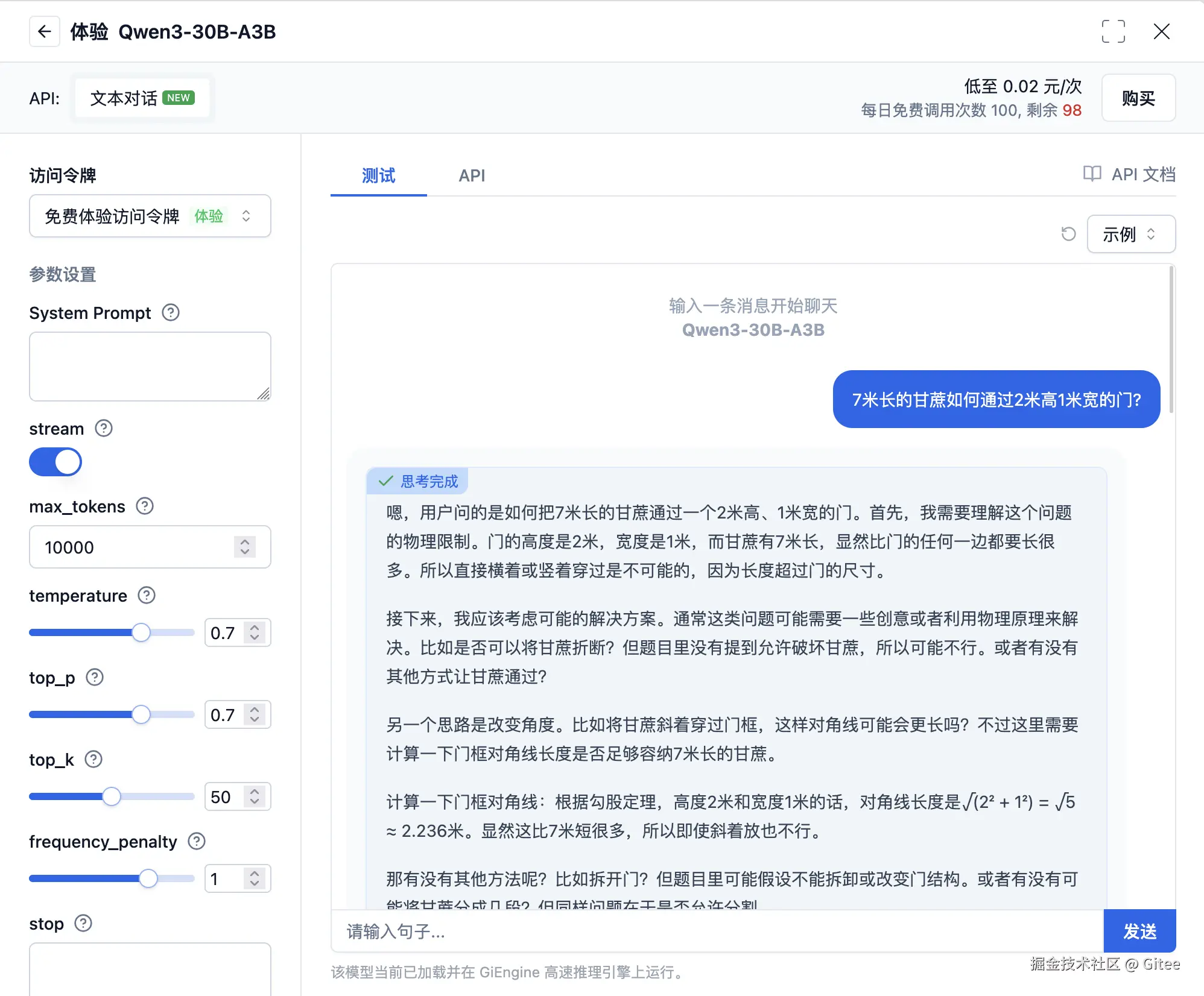 访问以下链接,在线体验 Qwen3 的强大实力:ai.gitee.com/serverless-…