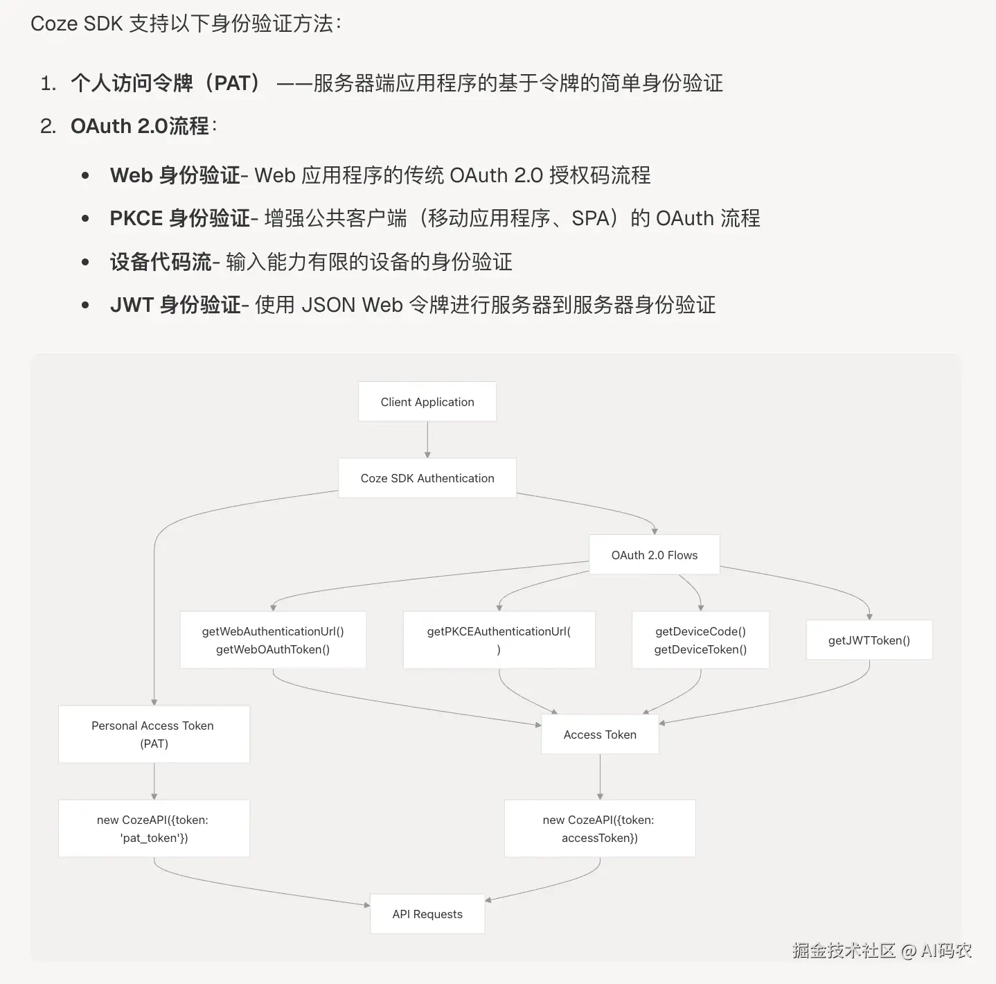 我仔细检查了 deepwiki.com/coze-dev/co… 的内容,发现它几乎完美还原了 coze-js 的代码功能。无论是功能的拆解、依赖的梳理,还是代码的解释,都非常到位。甚至连 README 里没写清楚的部分,DeepWiki 也通过分析代码补上了细节。这种智能化的理解能力,真的让我觉得它“非常牛逼”。