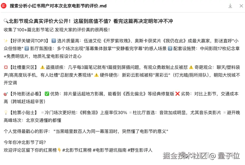 最后从 17 篇小红书笔记中,得到这些关键信息。不知道关注北影节的读者们有没有感同身受到~