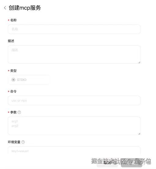 对于开发者来说也可以自行配置一个 MCP 工具 / 服务,仅需几个参数设置即可完成。