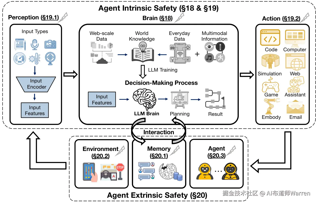 - 内在安全 (Intrinsic Safety):源于智能体内部组件的漏洞。