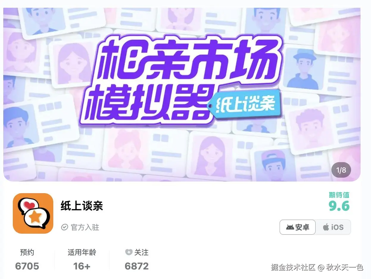 4月初,一款主打相亲的魔幻小游戏【纸上谈亲】以一种吊诡的姿态闯入了我们的生活,一群母单35年的宅宅编辑俨然成了相亲专业户,速通无数专业术语,什么资质、崽子、骗子手拿把掐,更是时不时在座位上发出“我结婚了”“我被踹了”“我死了”的绝望哀嚎。可以说,刚下飞机、人在工位,无痛感受上海CBD国潮相亲角的激烈氛围。