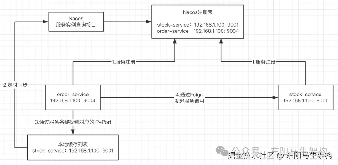 (1)微服务通过Nacos完成服务调用的请求流程