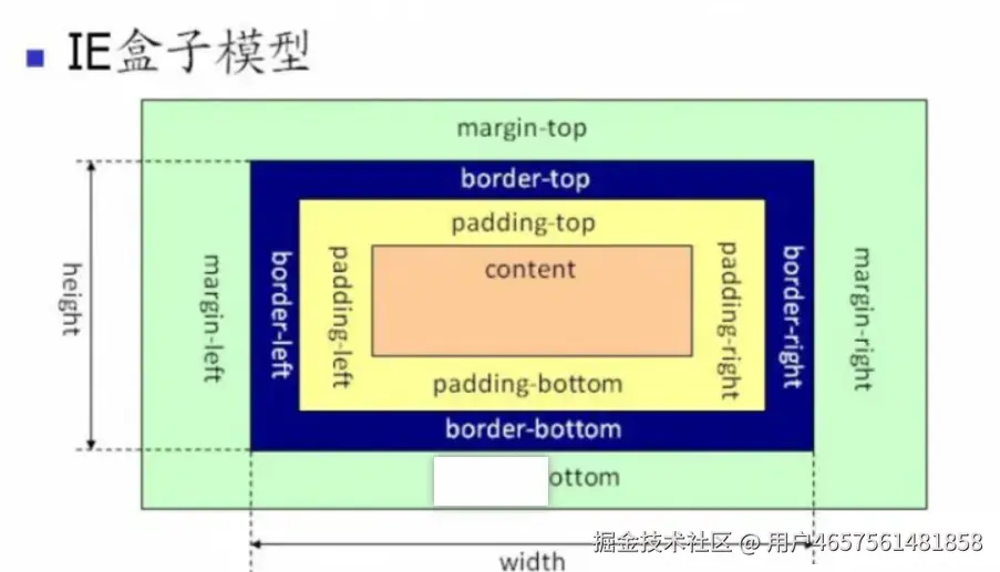 - IE盒模型的的width、height除了content本身,还包含了border、padding